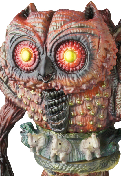 一羽のフクロウが飛び立つ。